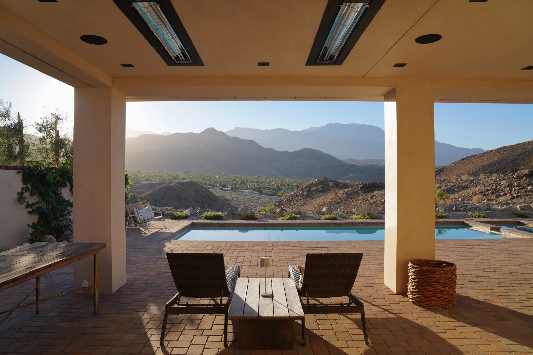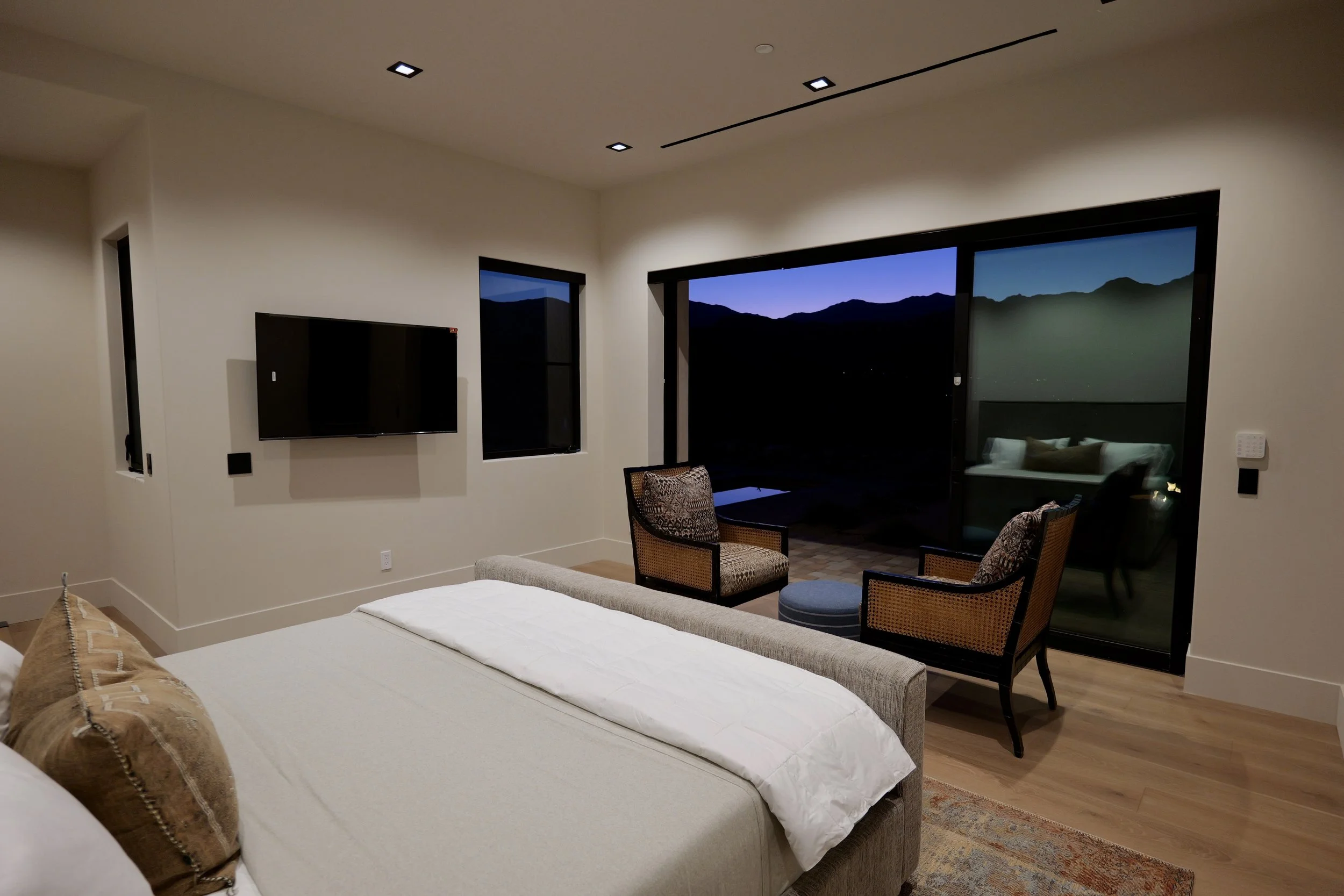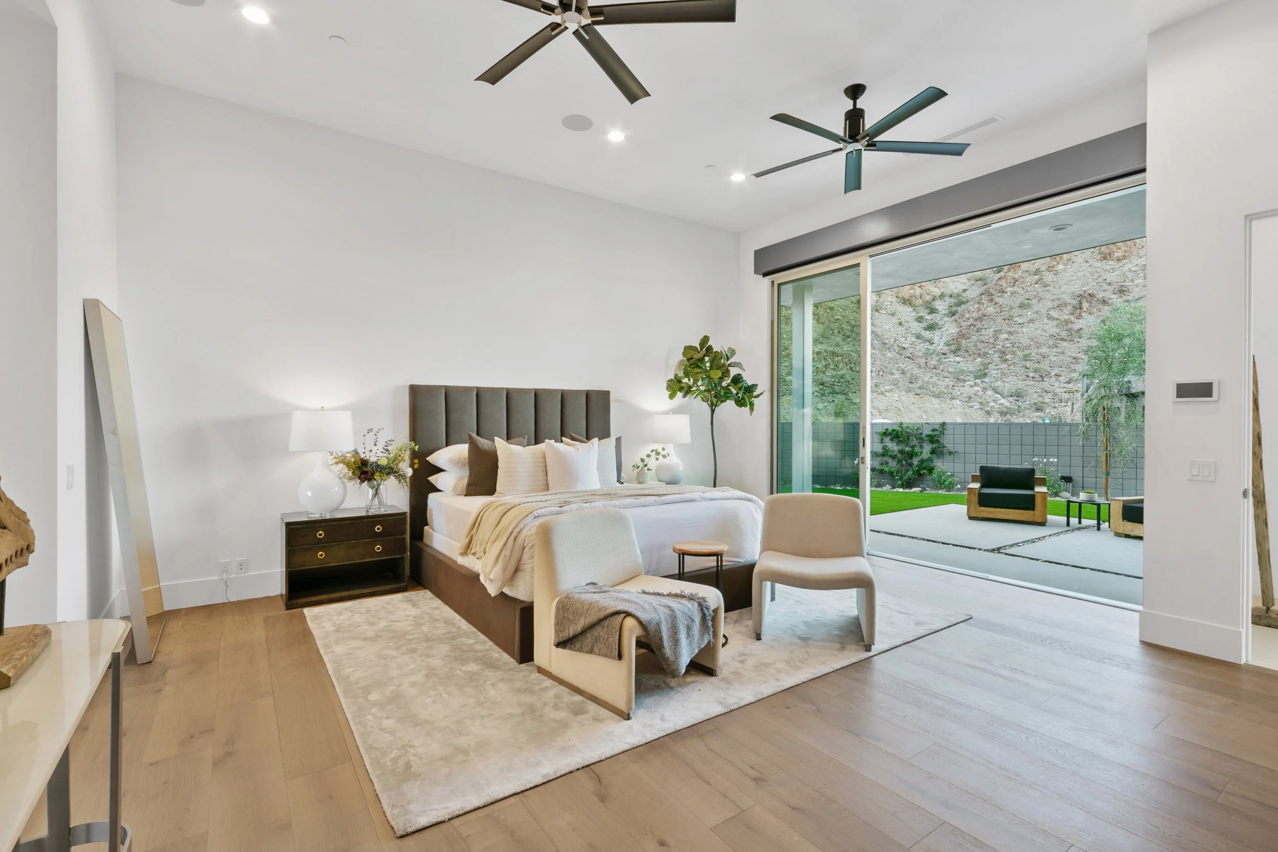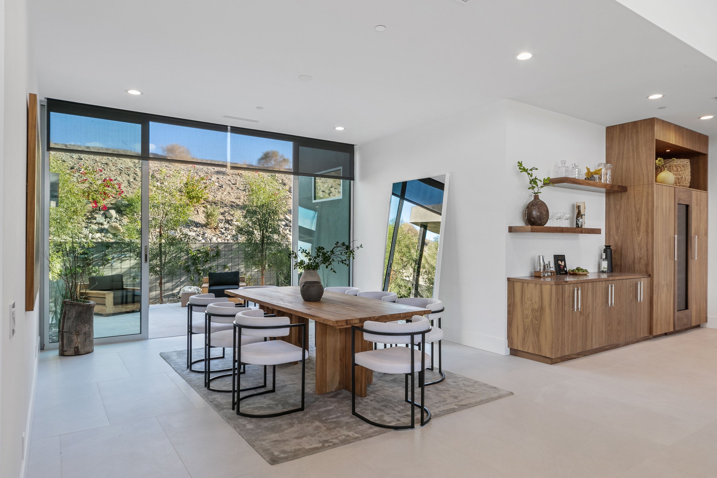 Transitional mid-century with clean lines, grounding details + natural materials.